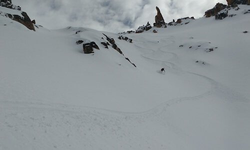 El Refugio Frey es el epicentro del esquí de travesía en Bariloche. Rodeado de agujas de granito y pendientes perfectas, ofrece opciones para todos los niveles, desde descensos tranquilos hasta canales técnicas.